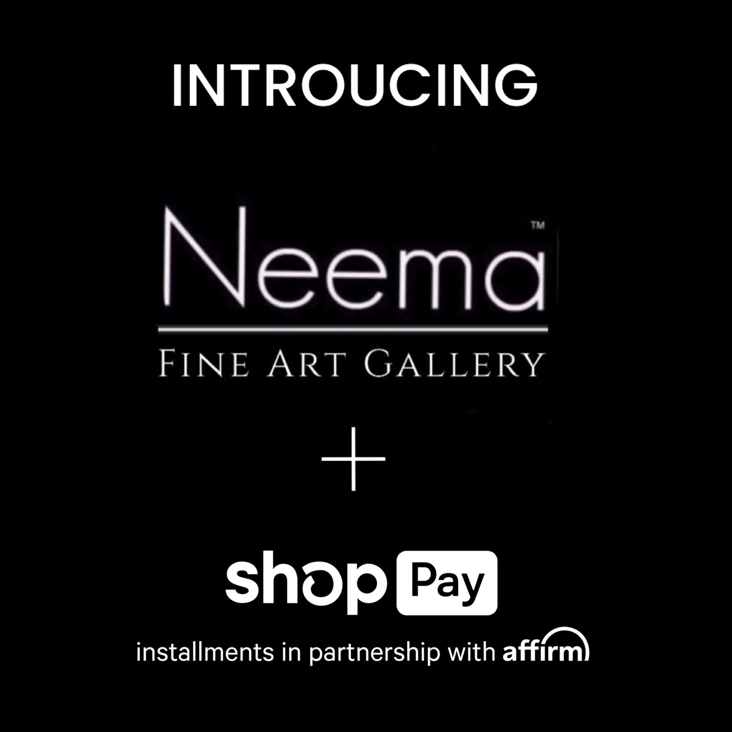 Neema Gallery is proud to offer more ways for you to acquire the art you love. Get the artwork you want in 4 interest-free payments or choose a monthly payment plan when you checkout with Shop Pay.*