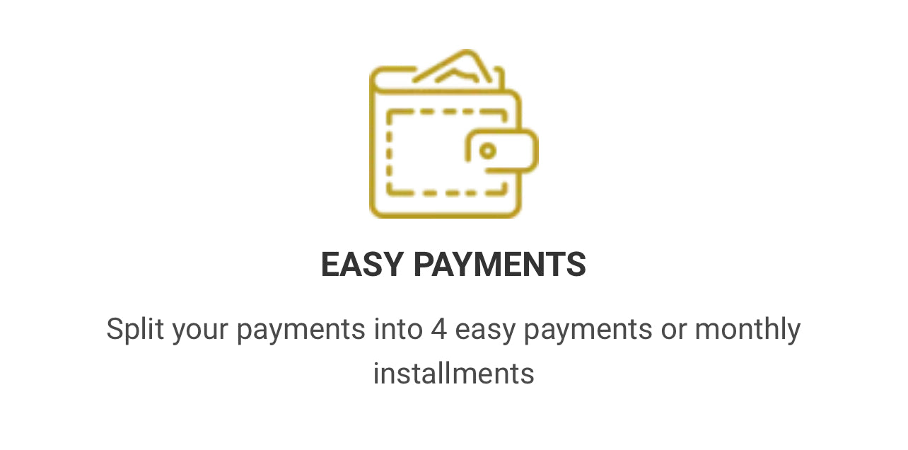 If you choose 4 interest-free payments, your first payment is paid at checkout. The next 3 remaining installments are automatically charged to your card saved on Shop Pay every 2 weeks. You will receive an email reminder before each payment.