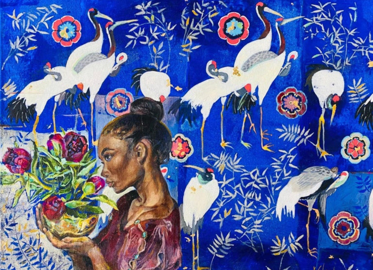 “Blue Crane Wall” by Noland Anderson measuring 12”x6” in oil on canvas