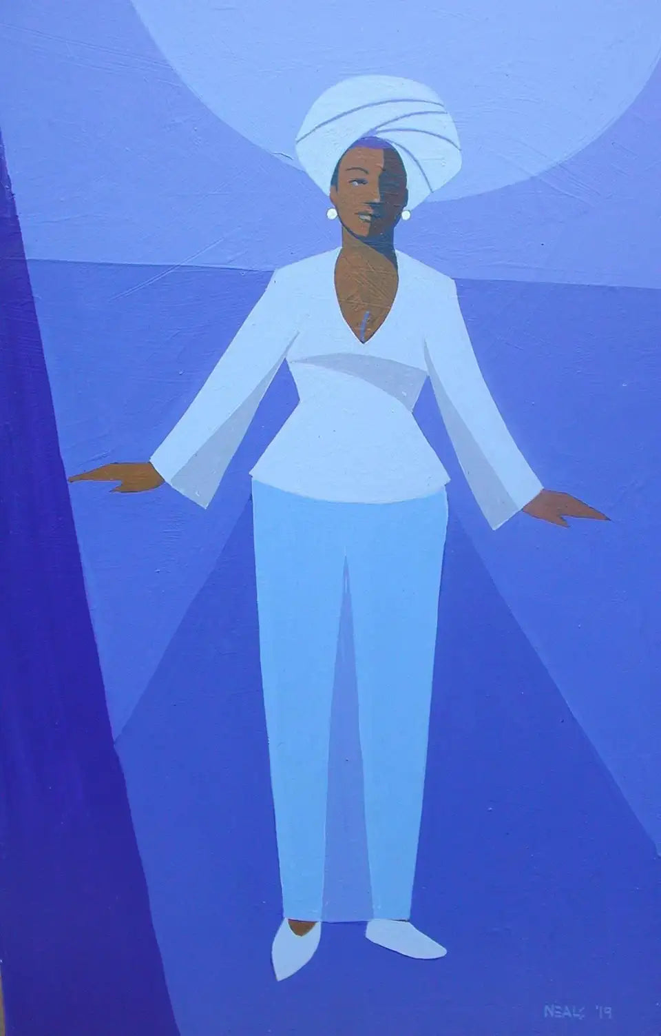 “Blue Model” by Otto Neals measuring 25”x15” in acrylic