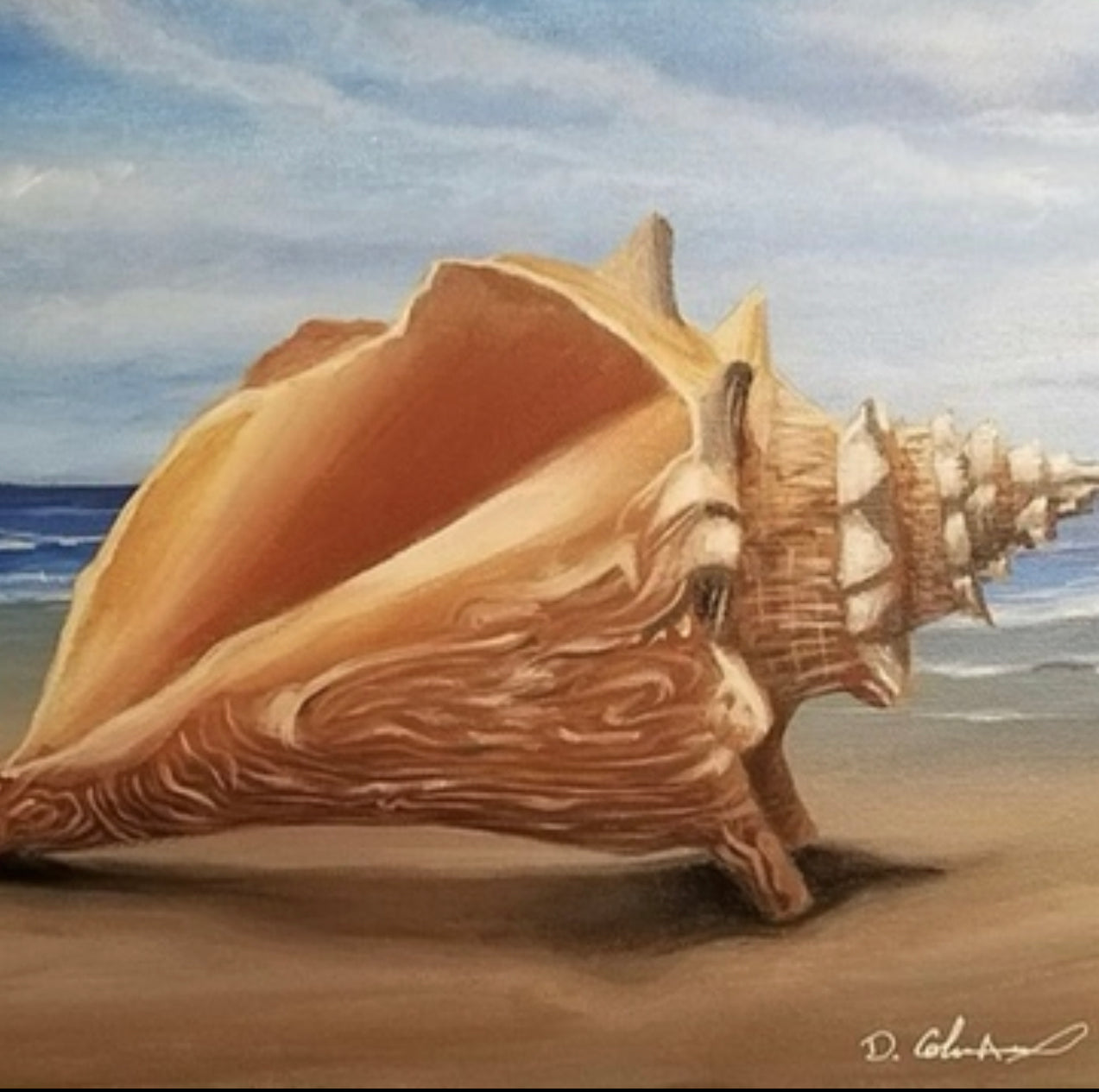 “Charleston Conch” by Dana Coleman measuring 11x14” in acrylic on canvas