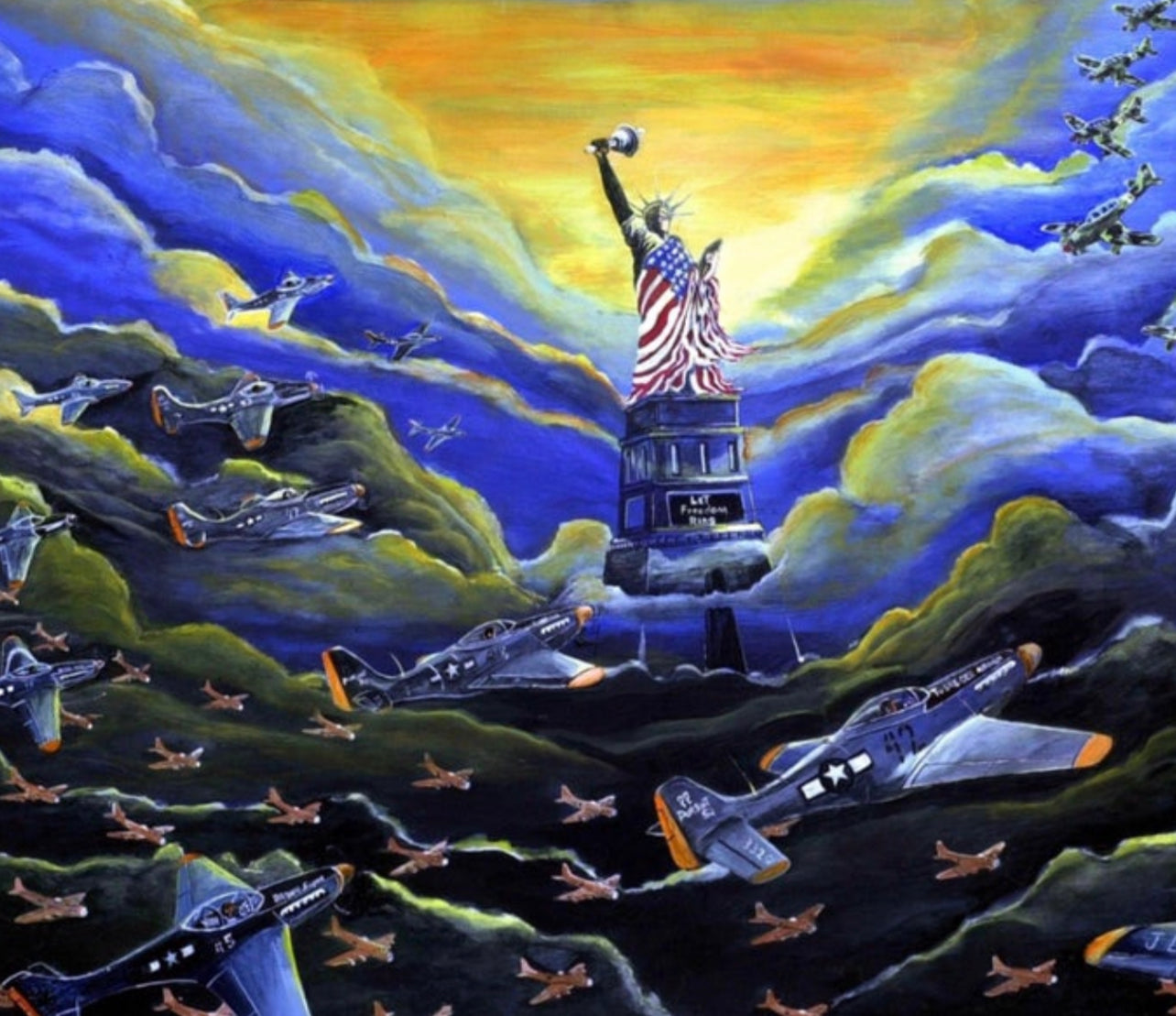 “Let Freedom Ring” by Johnnie Lee Gray measuring 25”x30”in acrylic house paint on board