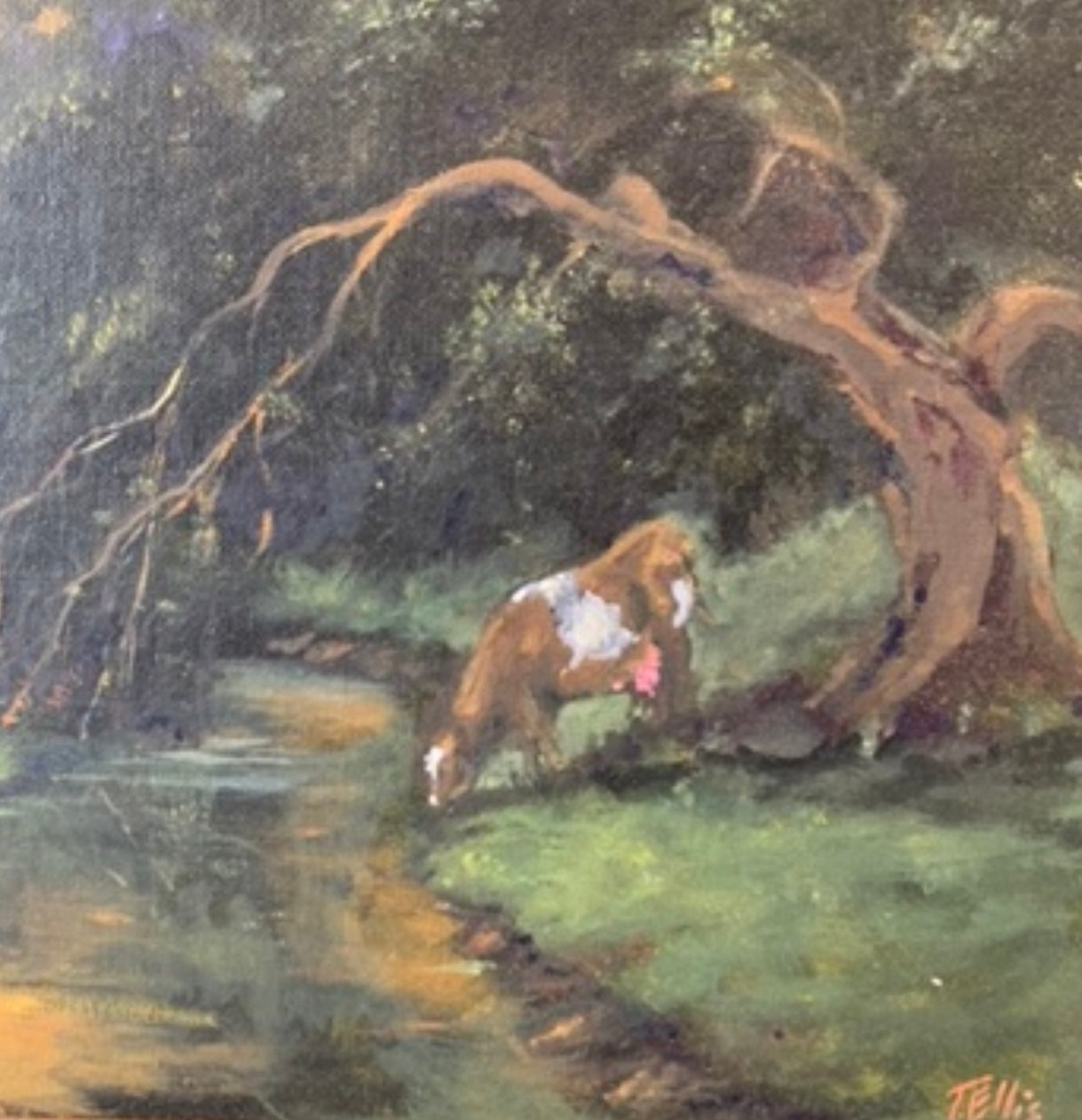 “Me and My Cows” by Ted Ellis measuring 12”x24” in oil on board